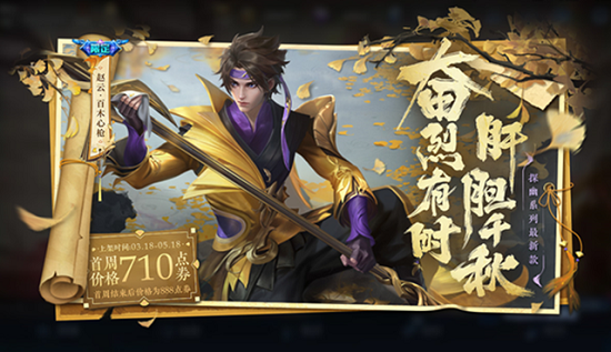 价格为710点券,荣耀恐惊游鱼展柔情。百木赵云百木心枪皮肤价格为2022年3月18日-3月24日 ,心枪